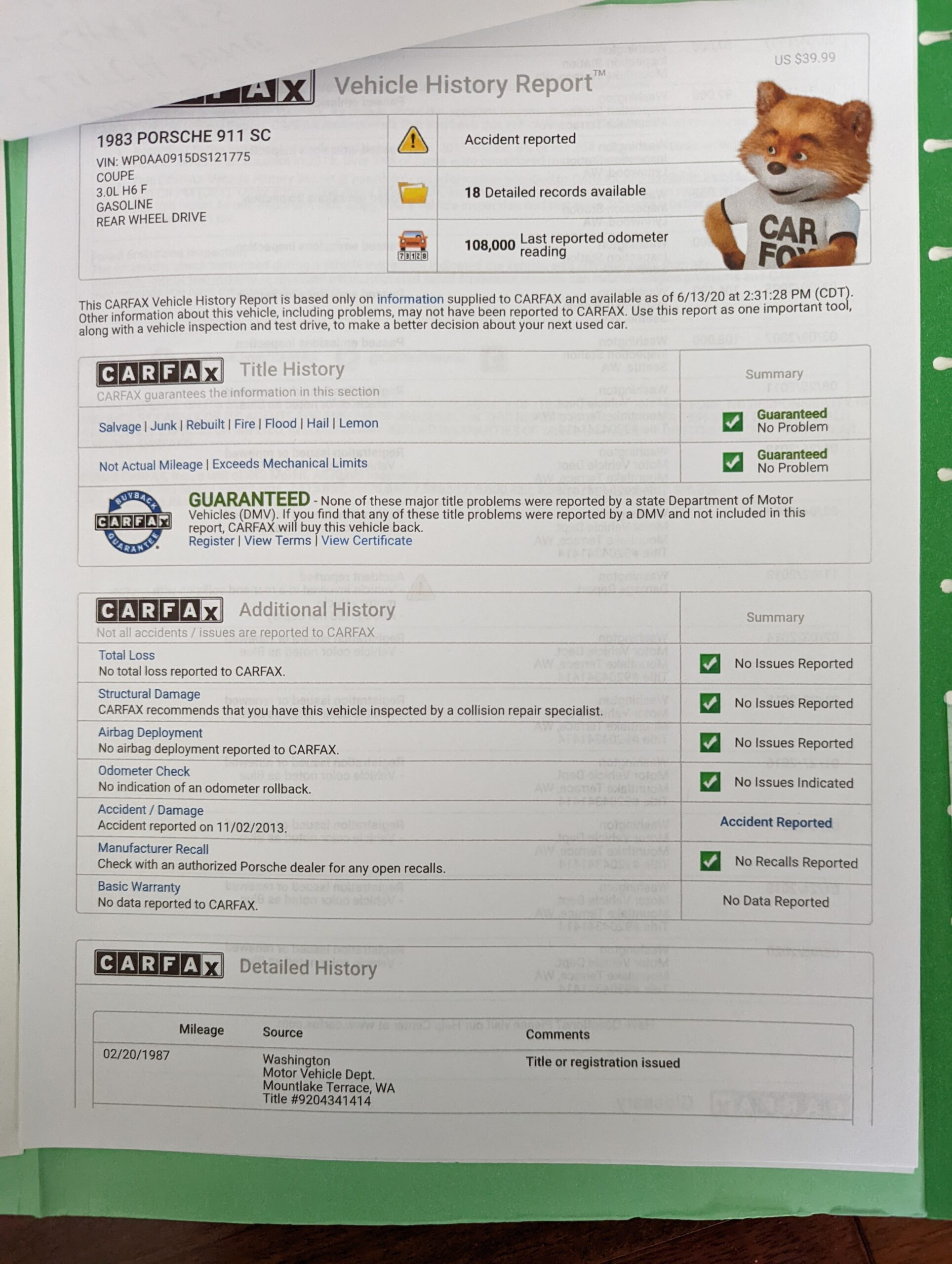 1983 Porsche 911SC Coupe